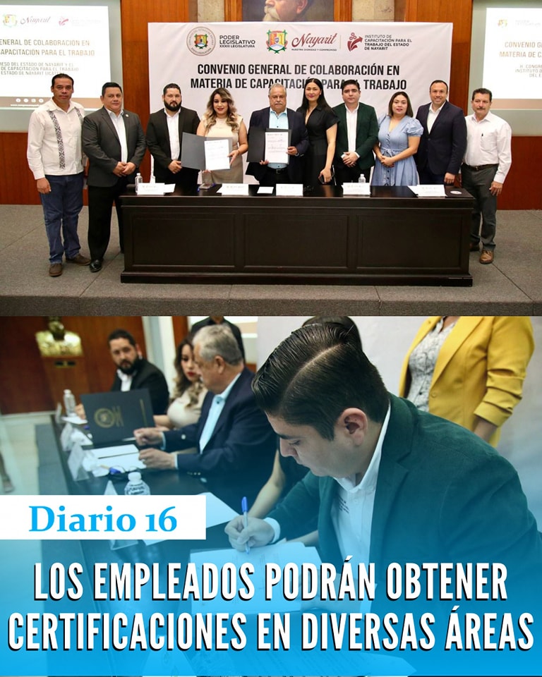 Tepic, 24 de julio de 2024.- En un esfuerzo por mejorar la capacitación y las competencias laborales de los empleados de la Cámara de Diputados, la Trigésima Tercera Legislatura ha firmado un convenio de colaboración con el Instituto de Capacitación para el Trabajo del Estado de Nayarit (ICATEN).