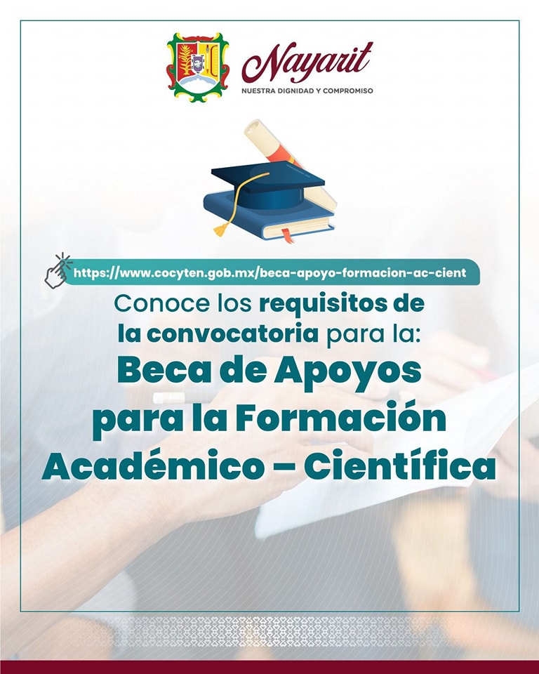 El Gobierno del Estado, a través del Consejo de Ciencia y Tecnología del Estado de Nayarit (COCYTEN), te invita a participar en la Convocatoria de Beca de Apoyos para la Formación Académico-Científica. Esta oportunidad busca promover el crecimiento académico y profesional de los estudiantes nayaritas y residentes, facilitando la finalización exitosa de sus estudios de nivel superior y posgrado. No dejes pasar esta oportunidad y consulta los detalles en el siguiente enlace 👇👇