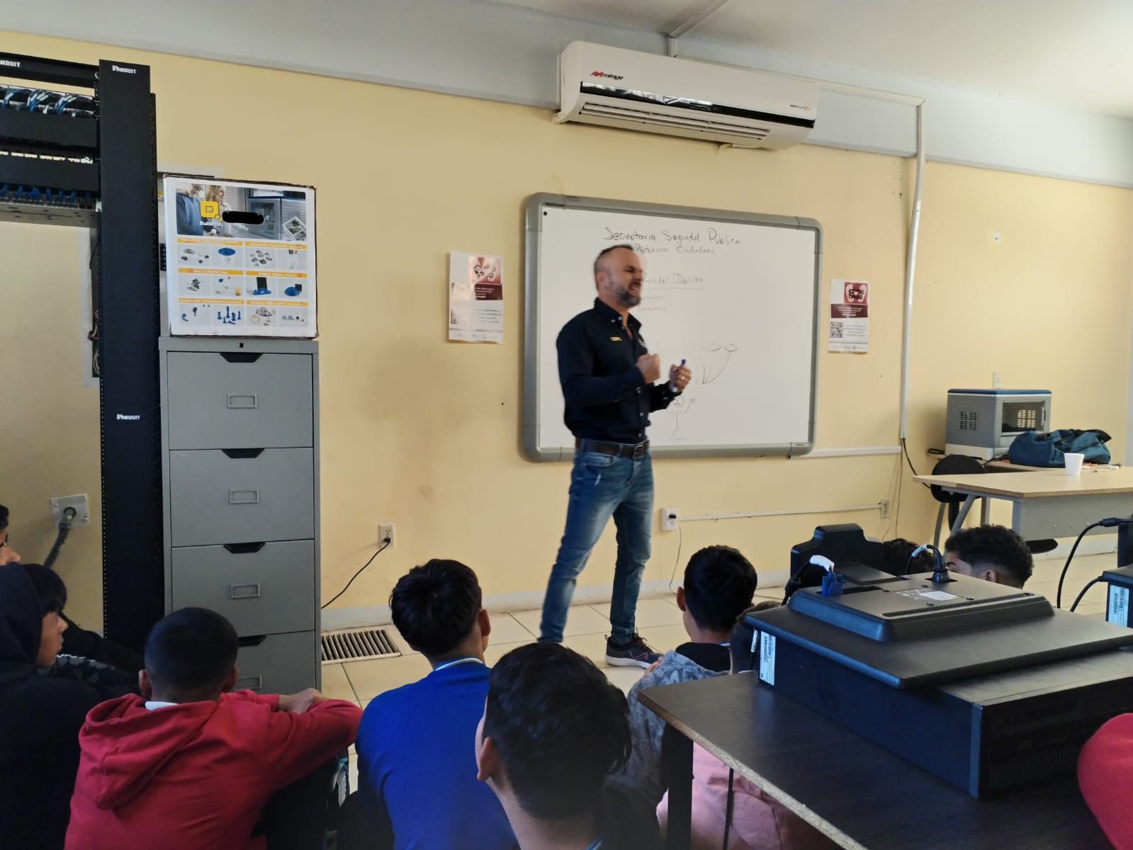 La Secretaría de Seguridad y Protección Ciudadana por conducto de la Dirección General de Prevención del Delito, acude a las instalaciones de la secundaria general “Eduardo Paz Salazar”, en el municipio de Tepic, para llevar a cabo pláticas preventivas a las y los estudiantes del plantel educativo.