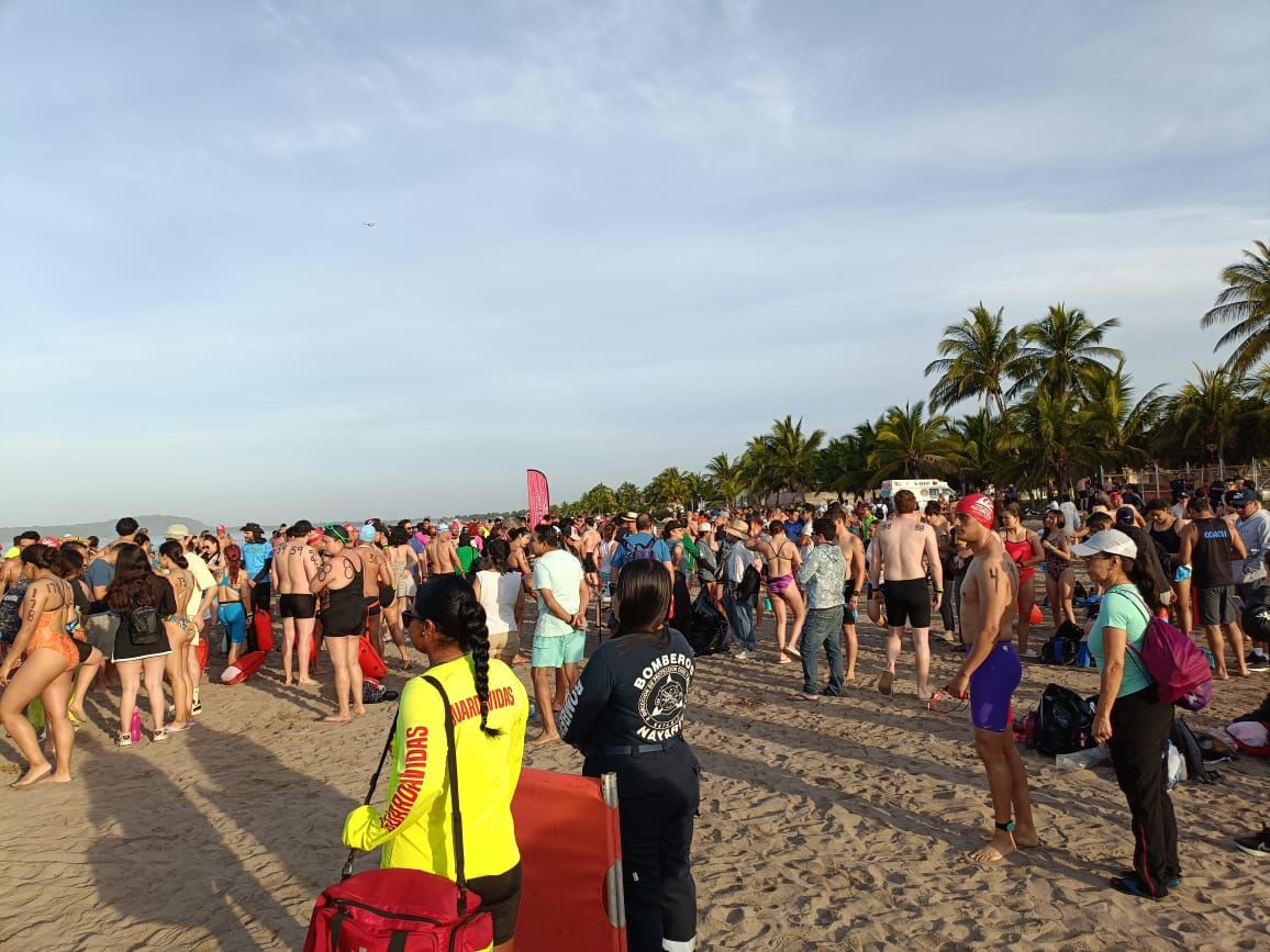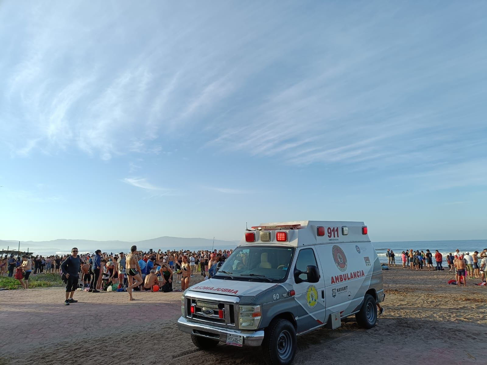 Los Bomberos de Nayarit y la Policía Estatal a través del equipo especializado de guardavidas llevan a cabo acciones de seguridad y prevención para salvaguardar a los 600 atletas y visitantes que acuden al evento.