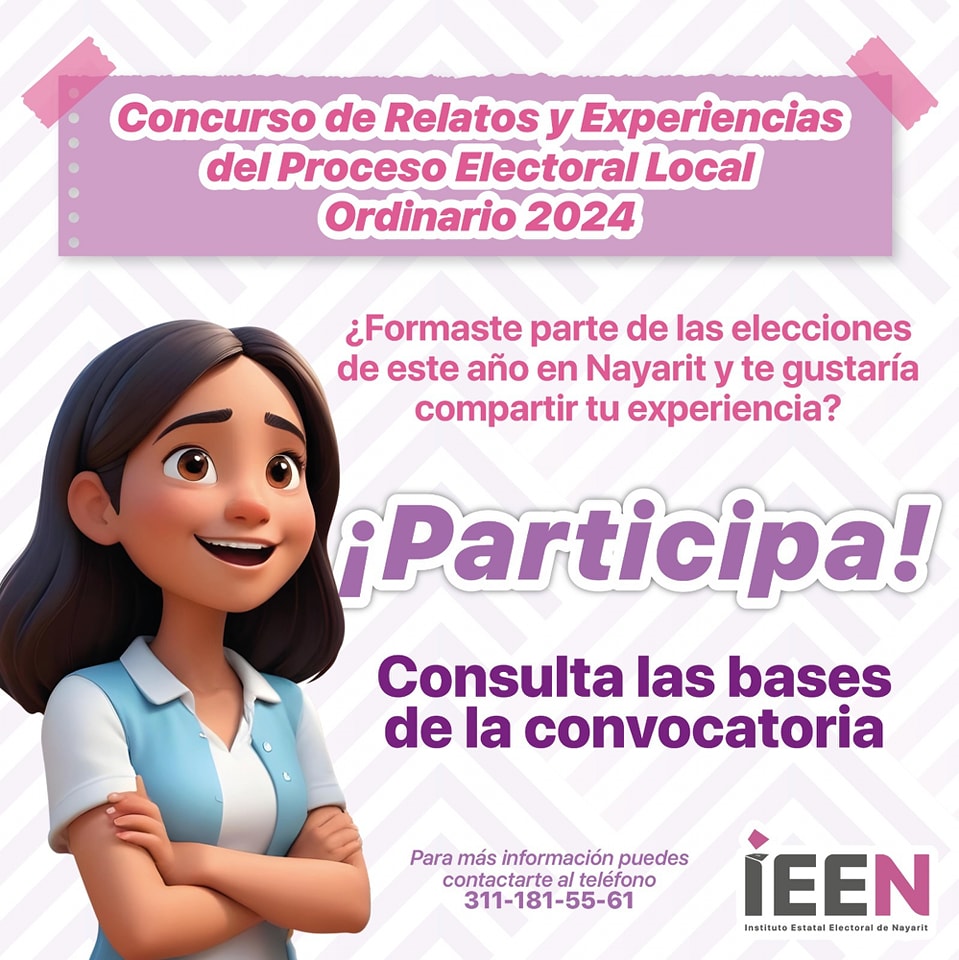 Si ejerciste tu voto el pasado 2 de junio, ¡esta es tu oportunidad para compartir tu experiencia y reflexiones sobre el proceso electoral! El Instituto Estatal Electoral de Nayarit (IEEN), a través de su Comisión Permanente de Educación Cívica y Cultura Democrática, invita a todas las personas que formaron parte del Proceso Electoral Concurrente 2023-2024 a participar en este concurso.