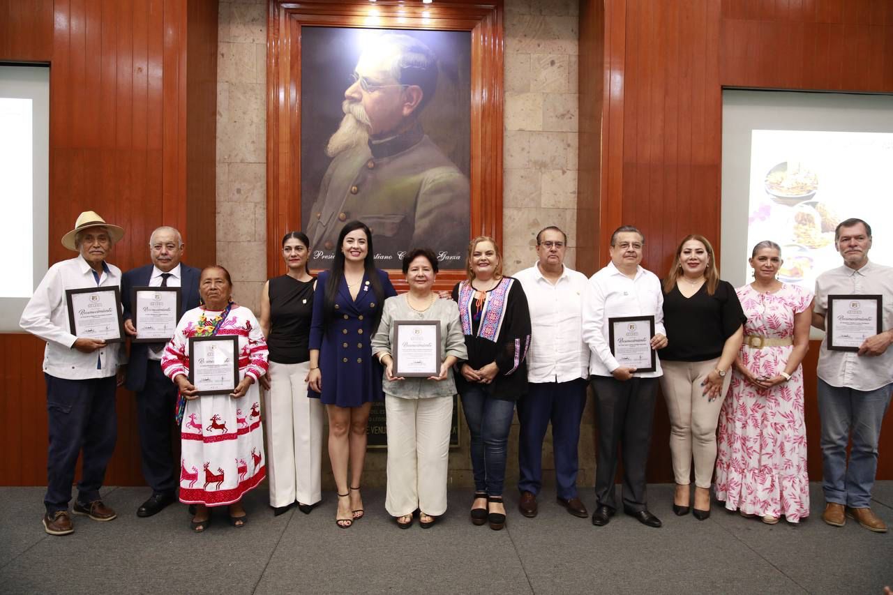Los reconocimientos fueron entregados a la cocinera tradicional Micaela Carrillo González; al historiador Pedro Luna Jiménez; al docente Juan Carlos Zúñiga, Miguel González Lomelí y un reconocimiento póstumo a don Roberto López Flores, fundador de la Salsa Huichol; todos con grandes aportes que han contribuido a enaltecer la gastronomía de Nayarit.