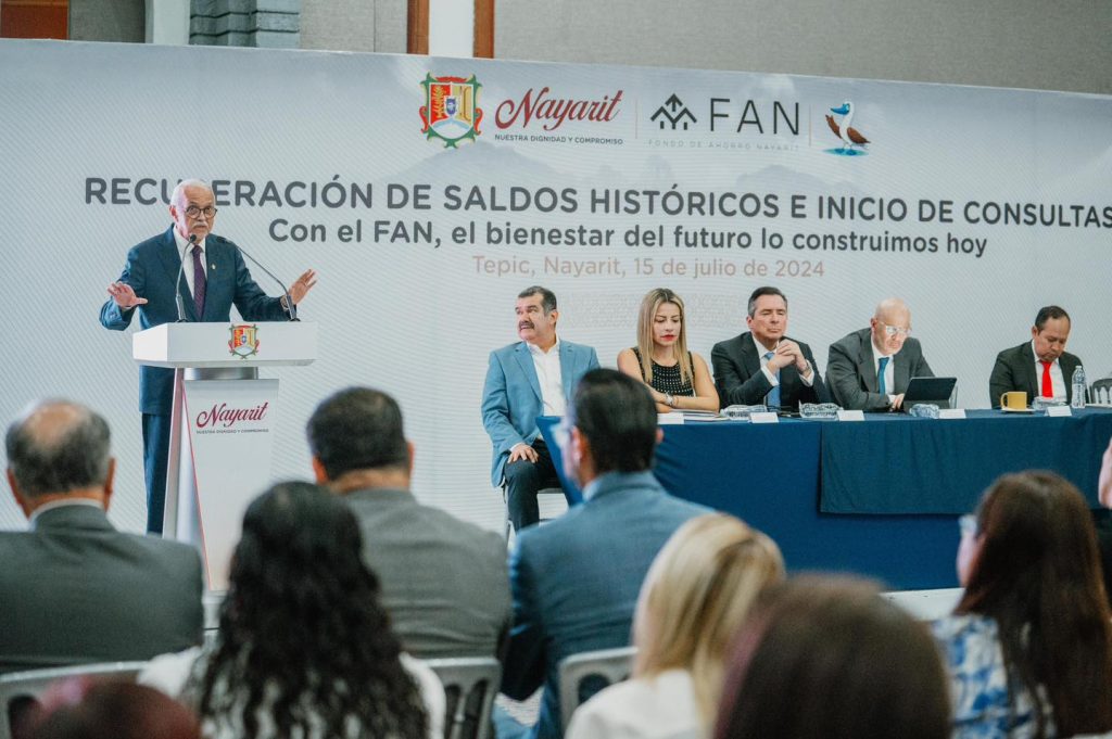 Este lunes, el gobernador del estado de Nayarit, Miguel Ángel Navarro Quintero, presidió la reunión “Recuperación de saldos históricos e inicio de consultas con el FAN, el bienestar del futuro lo construimos hoy”, con el objetivo de asegurar la confiabilidad del ahorro para el retiro de los trabajadores. En este evento estuvieron presentes Julio César Cervantes Parra, presidente de la Comisión Nacional del Sistema de Ahorro para el Retiro (CONSAR), y David Razú Aznar, director general de Afore XXI Banorte.