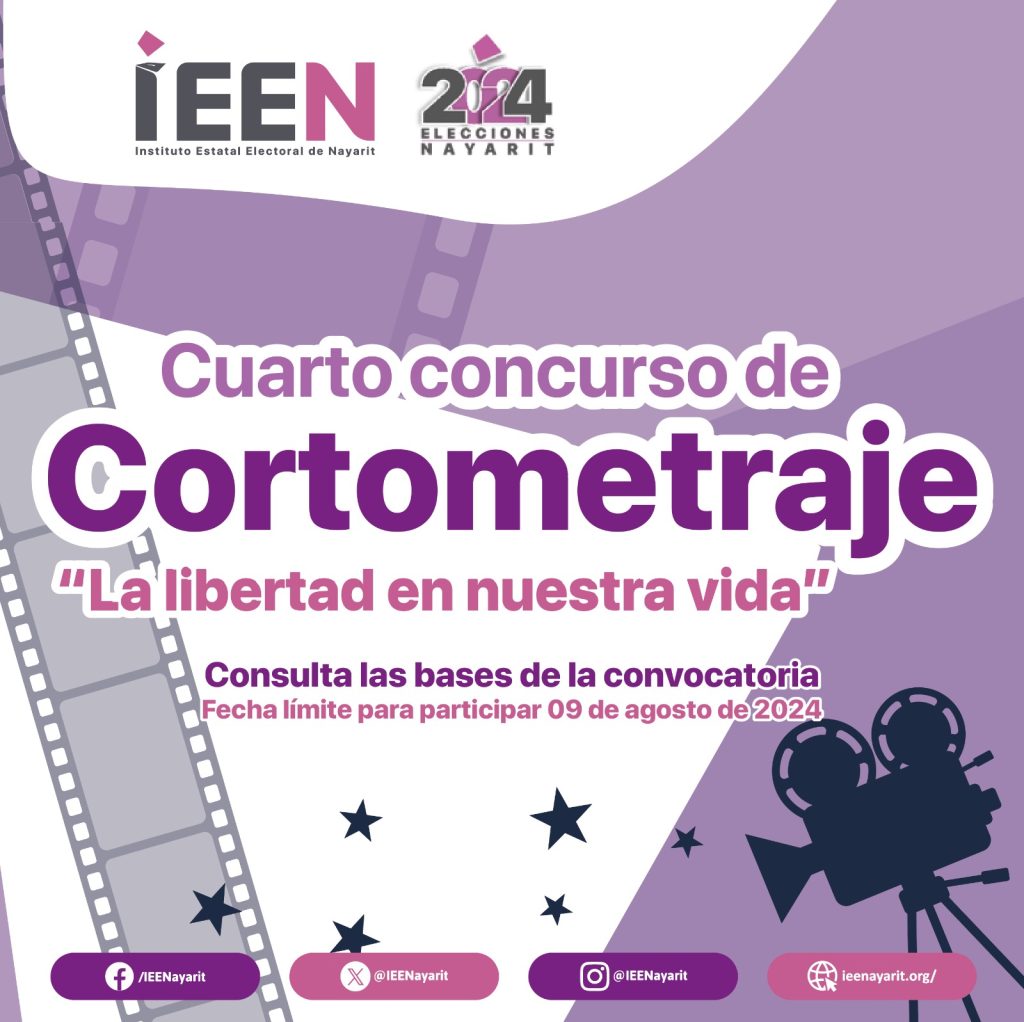 El Instituto Estatal Electoral de Nayarit, a través de la Comisión Permanente de Educación Cívica y Cultura Democrática, invitan a participar en el Cuarto Concurso de Cortometraje Democrático: “La libertad en nuestra vida”, pueden participar las y los nayaritas residentes en el estado.