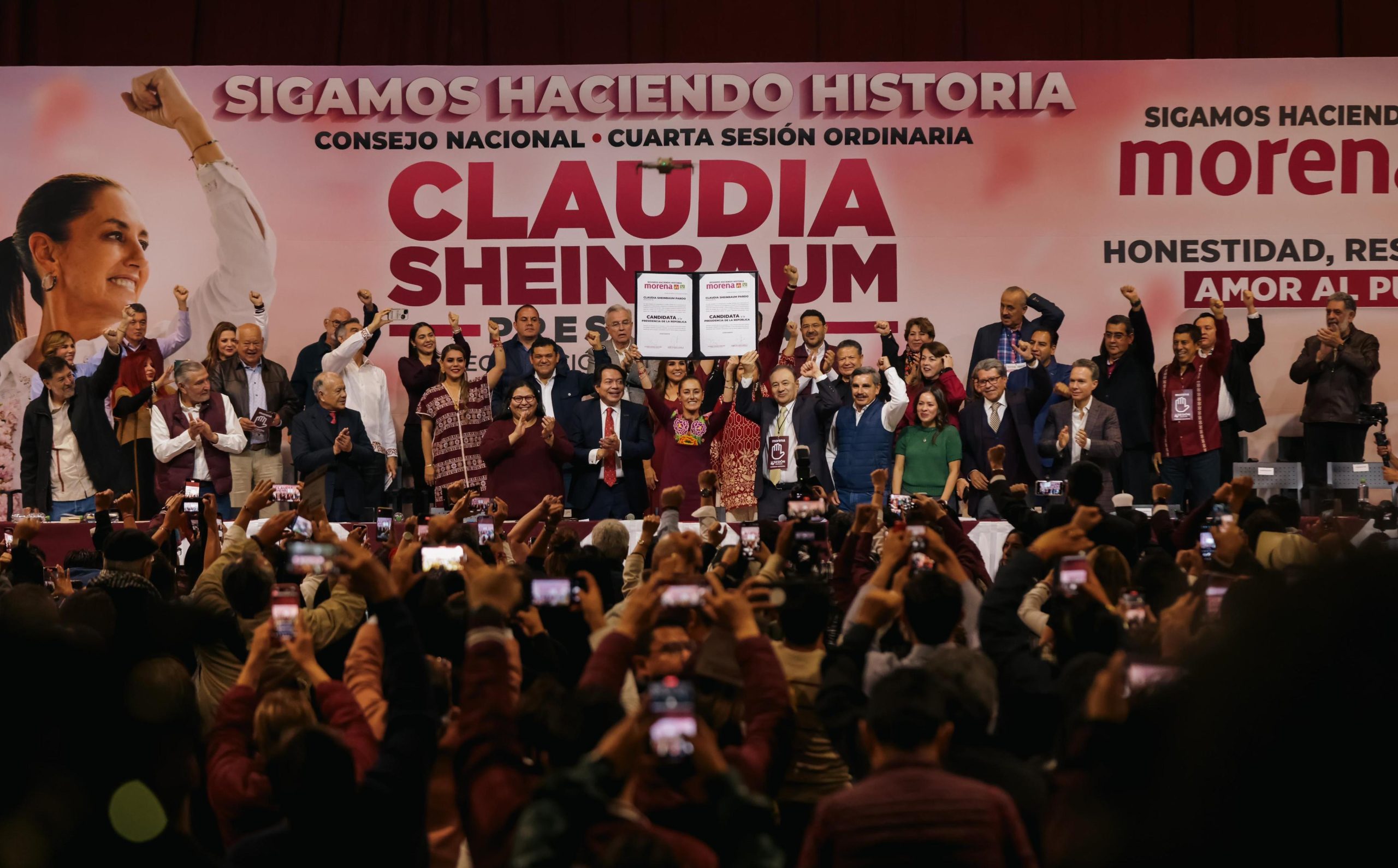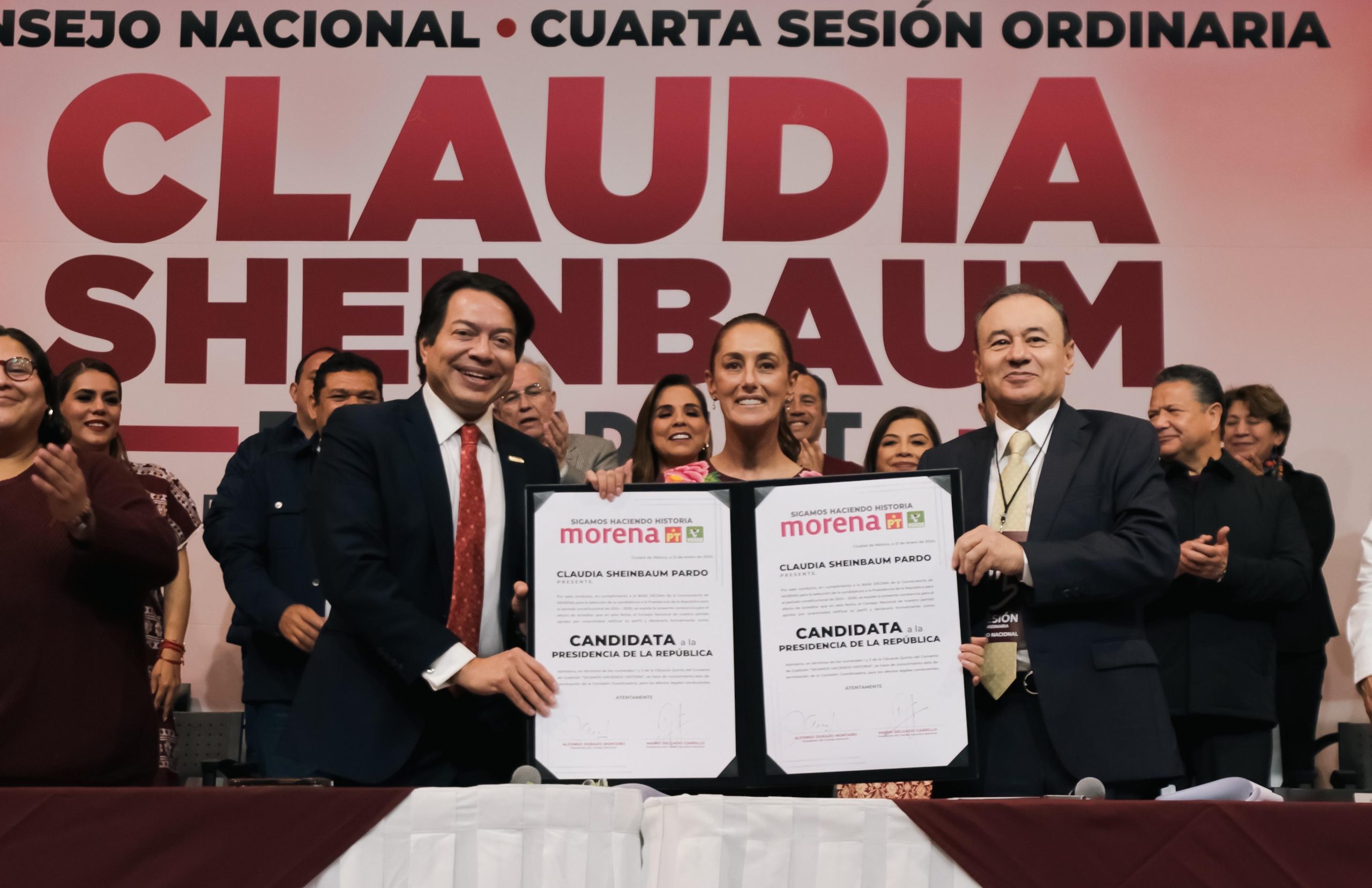 En la Cuarta Sesión Ordinaria del Consejo Nacional de Morena, la tarde de hoy, Claudia Sheinbaum Pardo fue proclamada candidata virtual a la Presidencia de la República por unanimidad de votos. Este acto histórico representa un paso crucial en la consolidación del proyecto de la Cuarta Transformación, según lo expresado por los líderes del partido.